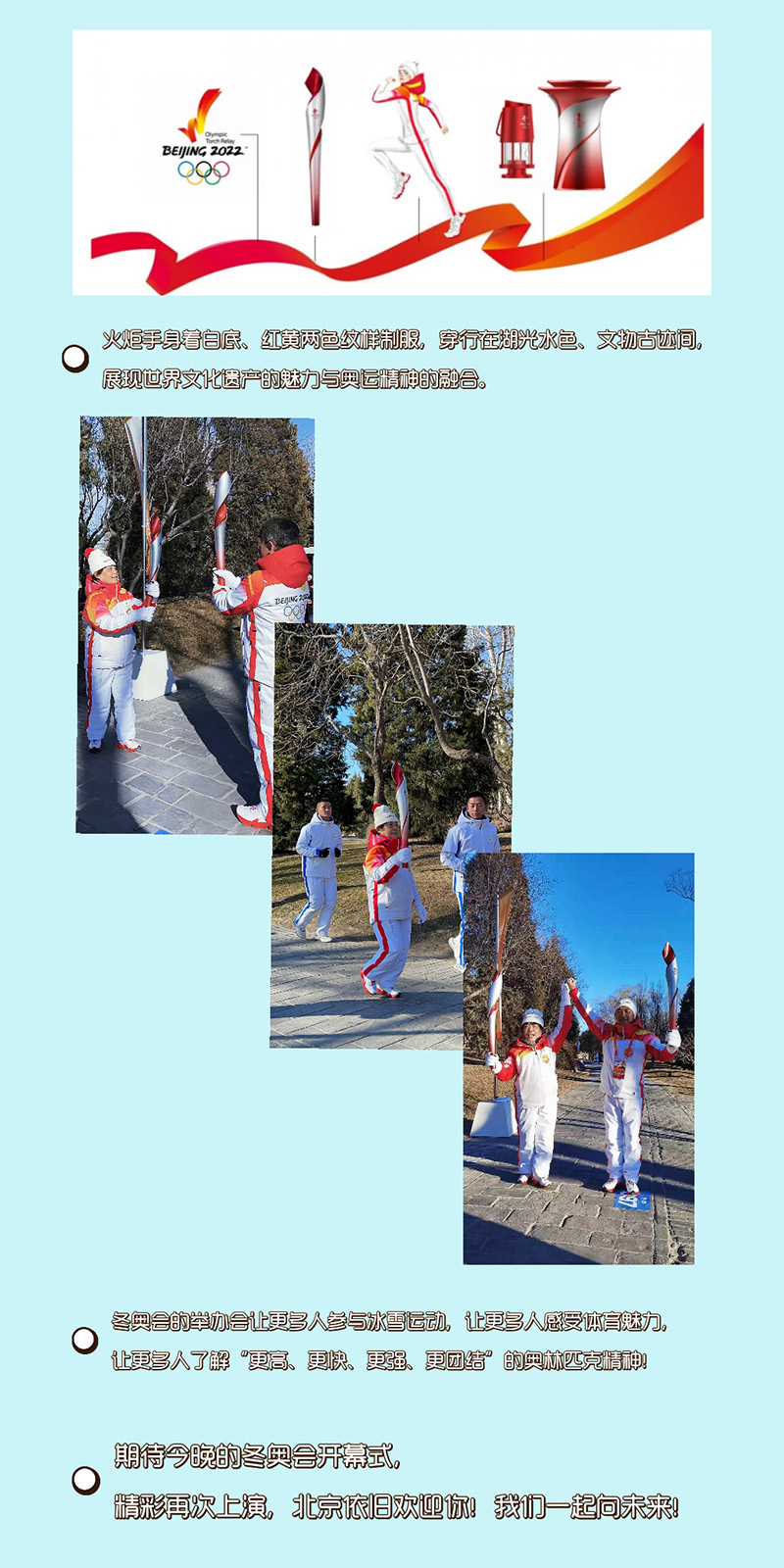 【概要描述】2月4日上午,北京各典會火炮在象征“華豆園口”的顧和園傳遞。和園場次傳遞距離共5,132公里。由101名火炬手接力完成。信遞從知春享橋頭出發,路經文昌閣、八方享玉帶坊等標志性景觀,直至東半壁標收火。時代集團公司總裁王小蘭作為頤和園場次的第96棒火炬于參與接力。